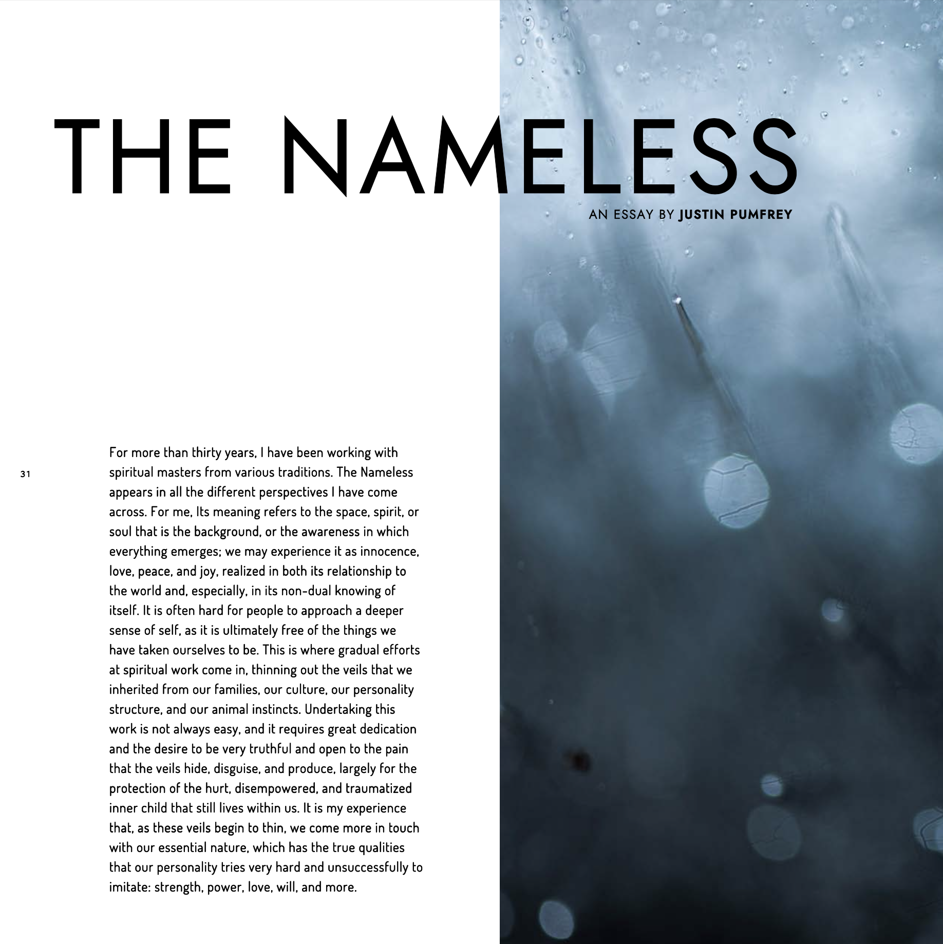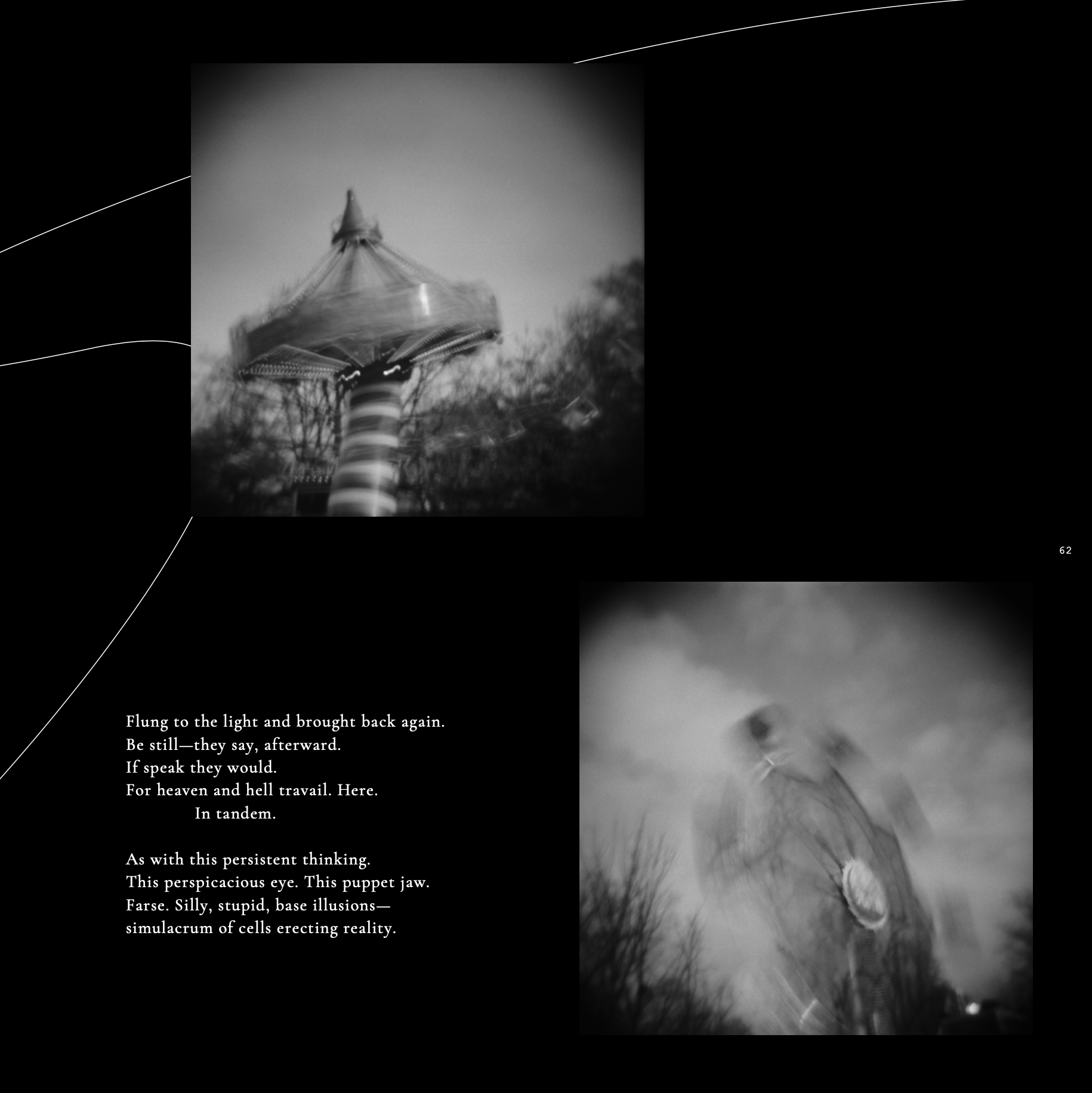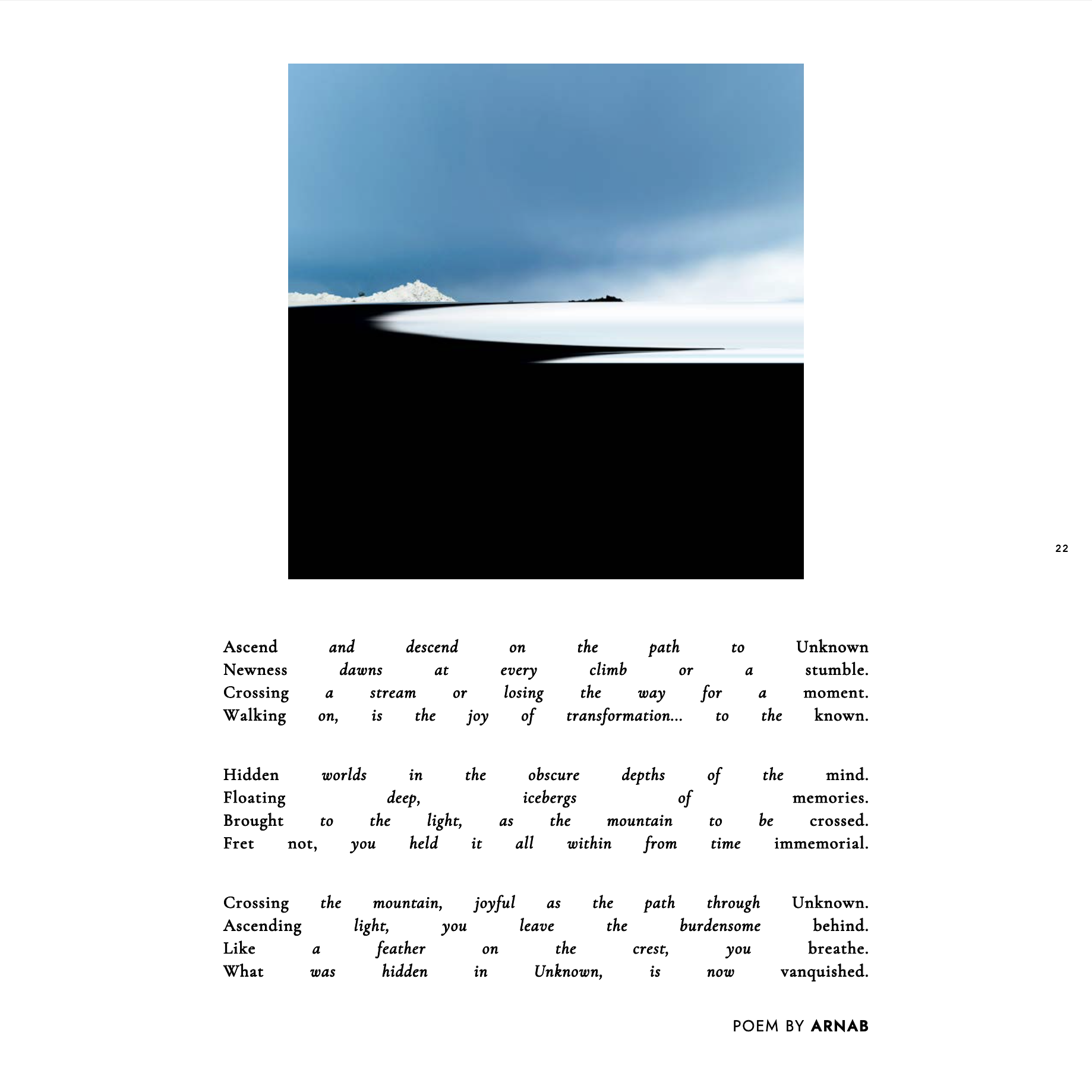 Accompanied by contemplative essays and poems from writers worldwide, this magazine will be sure to cradle you through an aesthetic journey across fascinating visual and semantic metaphors. Ultimately, this assemblage inconspicuously drives a grander narrative about the elegant but fragile nature of our world, which finds itself contrasted, if not opposed, by the cruder complexity of the human mind and all its seemingly ephemeral, yet enduring constructs.